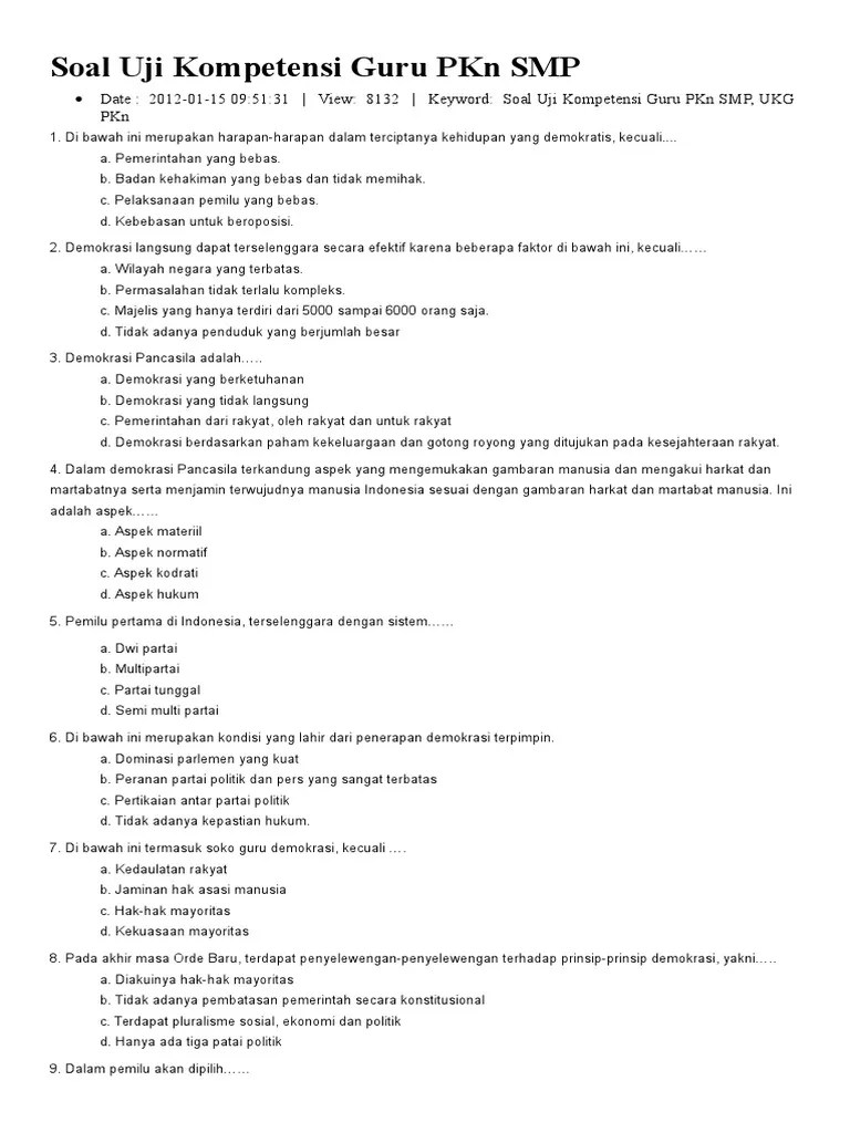 Contoh Soal Ukg Guru Ppkn Smp - Contoh Soal Ukg Pendidikan Kewarganegaraan Smk 2021 Online Terbaru Gingsul Com : Format data guru dan pegawai terbaru;
